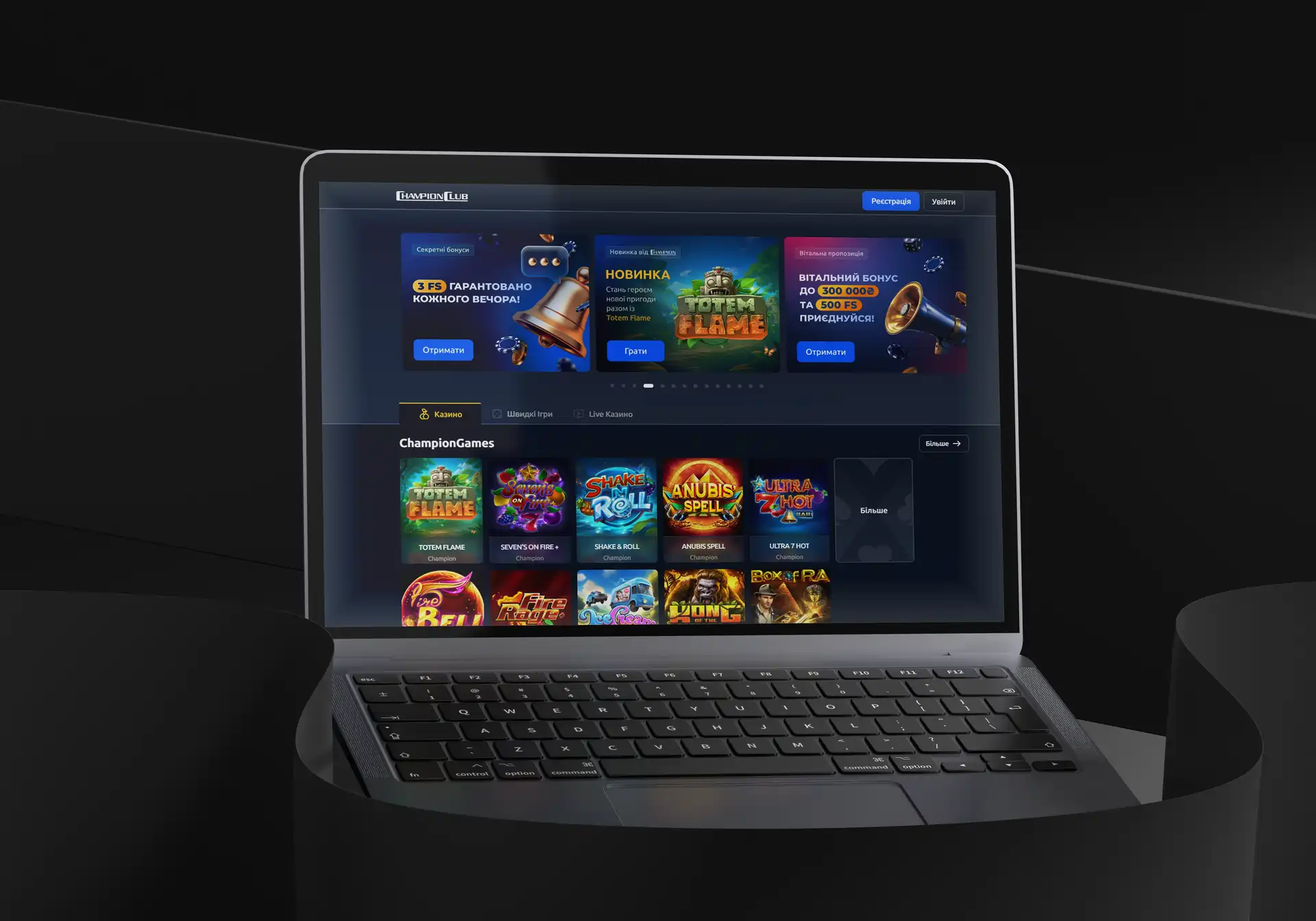 Найкраще українське казино! Інтерфейс повністю українською, щотижневий кешбек 15 % реально приходить, турніри з призами до 500 000 грн. Champion Club — любов з першого депозиту ❤️