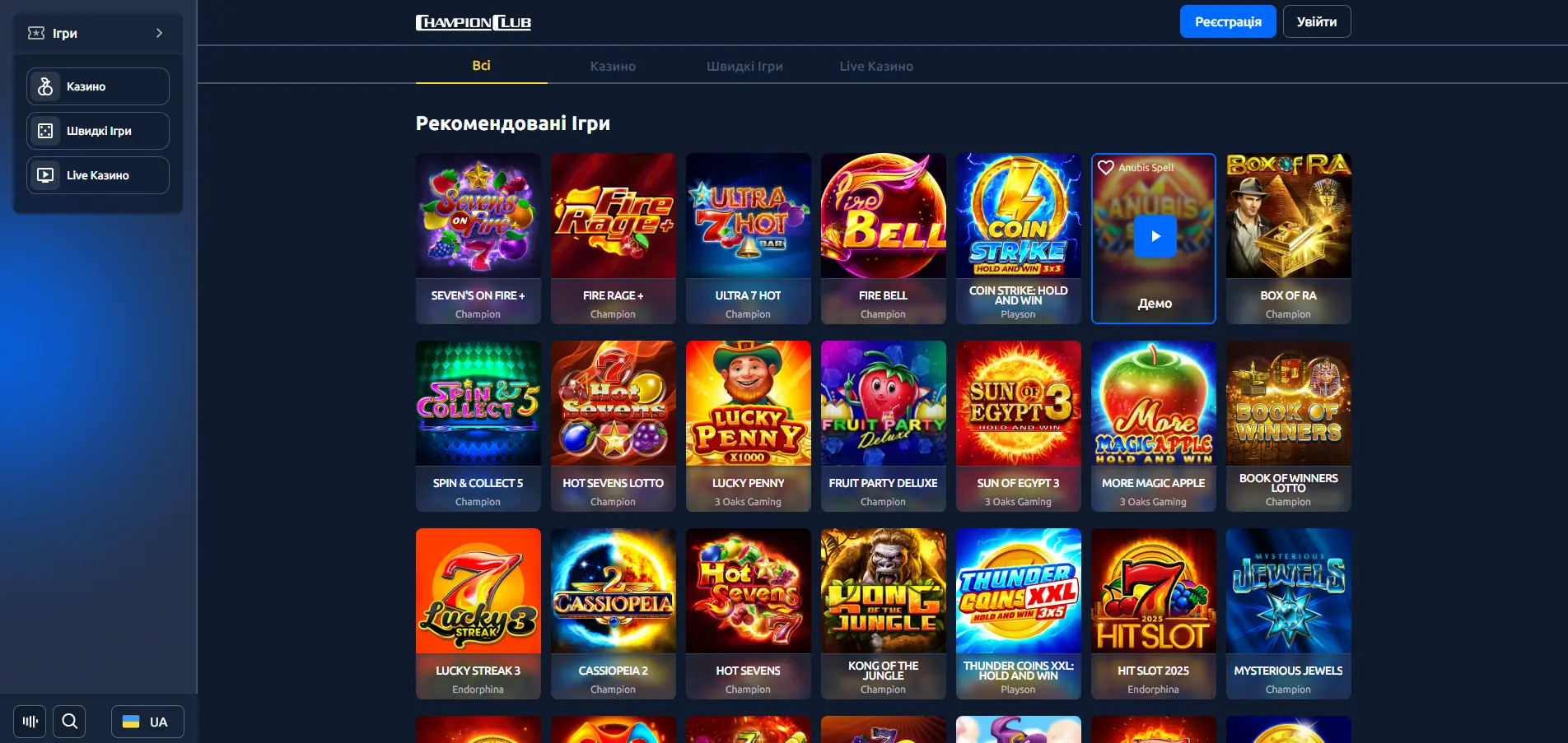 Champion Club пропонує величезну колекцію слотів для різних категорій гравців. Тут представлені класичні та сучасні ігрові автомати, які поєднують захопливий сюжет, високий RTP та бездоганну графіку. Ігрові автомати від Чемпіон клуб забезпечують чесну гру та стабільні виплати, а завдяки співпраці з провідними розробниками гравці отримують доступ до найновіших технологій ігор. Різноманітність слотів дозволяє кожному обрати гру за власними вподобаннями, а мобільна адаптація забезпечує зручність навіть під час гри зі смартфона.